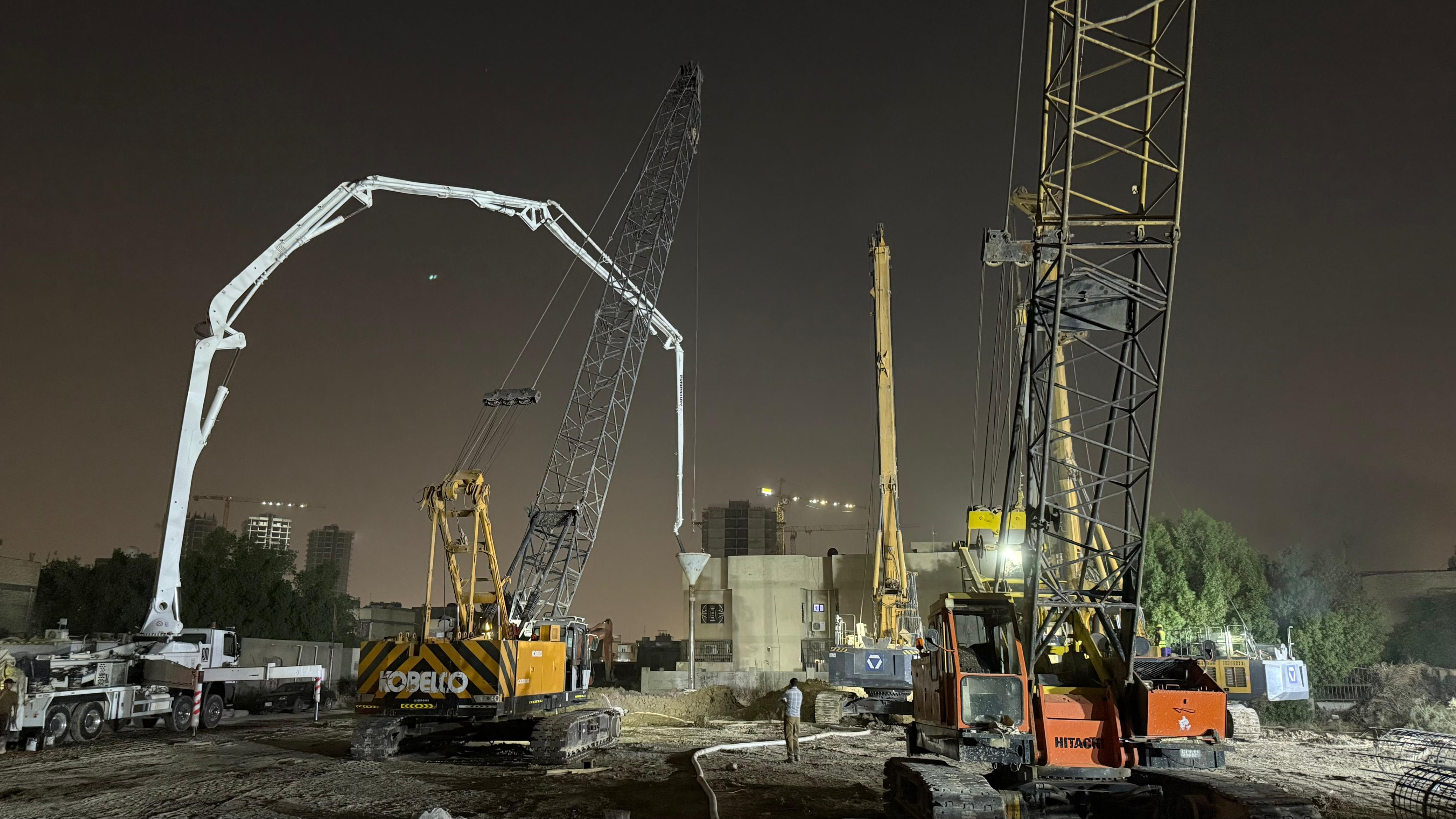 المباشرة باعمال حفر الركائز في موقع البناية b6
